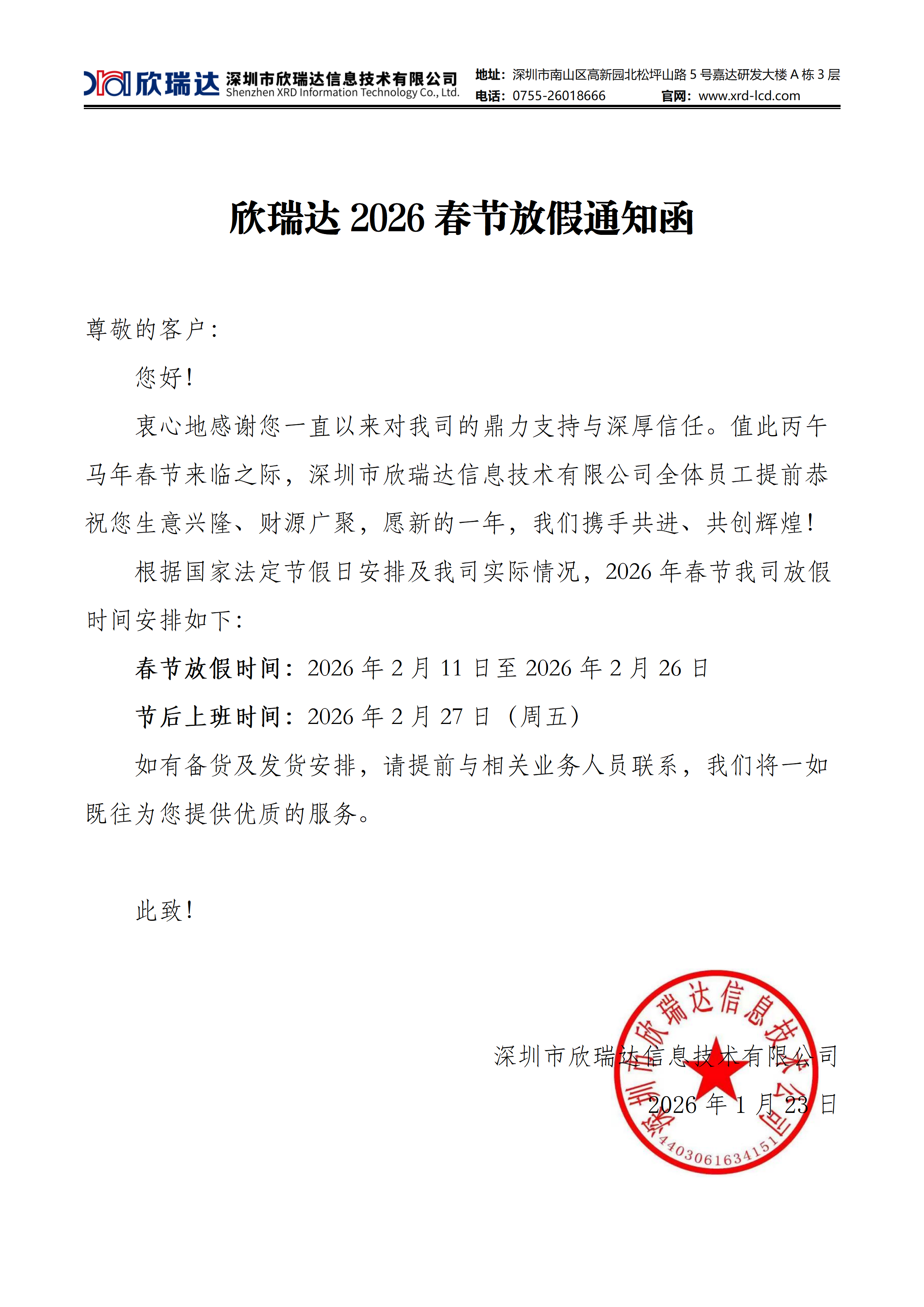 菲律宾亚星2026春节放假通知函